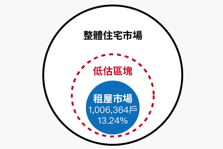 故應該這樣理解,依現有政府可掌握的數據,台灣租屋市場規模已超過百萬戶,租屋市場比例應大於13.24%。