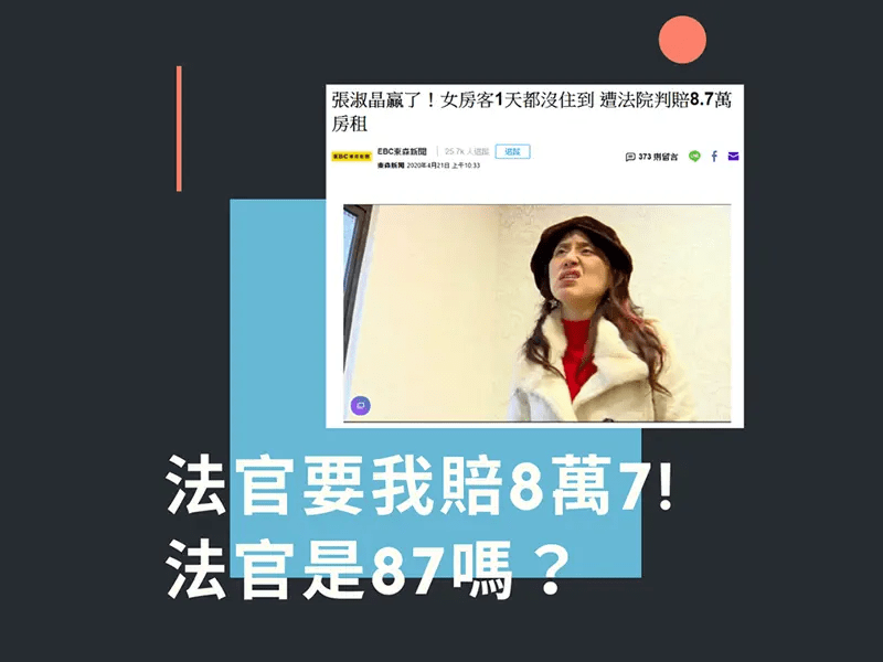 前陣子有則新聞鬧得沸沸揚揚,以坑殺房客聞名的張姓房東,這次居然告贏了房客,房客明明一天也沒有住到,但法官卻判房客必須賠償張姓房東8.7萬! 到底,這一切是台灣盛產恐龍法官?還是鬼島法律專門保障房東?讓我們繼續把故事看下去–